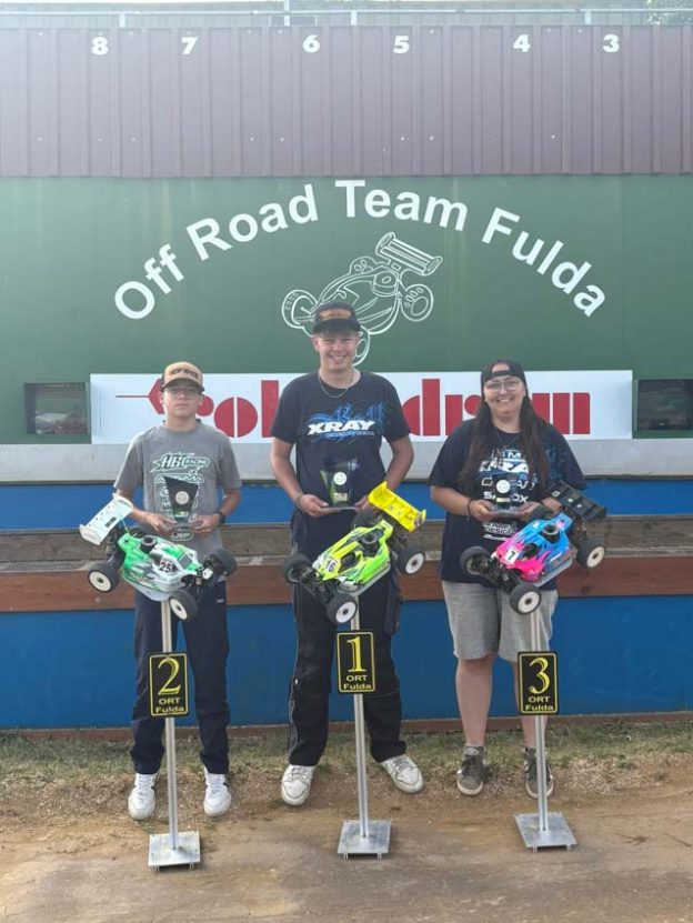 Donnerstag waren schon die ersten angereist und haben die Zelte aufgeschlagen bei herrlichem Sommerwetter, Freitag konnte man trainieren und dank Flutlicht so lange fahren bis einem die Finger weh tun, was auch einige genossen haben. Samstag ging es dann mit den Trainings los, ab Mittag die ersten 3 Vorläufe. Dann kam auch schon das uns wichtigste Event, um 18:30 startete das Jugendfinale, mit 8 Startern leider nicht sooo gut besetzt, aber es wurden einige sehr neugierig und haben mir versprochen nächstes Jahr dabei zu sein, bei den 8 Startern hatten alle Spaß, leider gab es Ausfälle mit denen nicht zu rechnen war, aber zum Rennen fahren gehört immer ein Quäntchen Glück, dass das Material hält. Ralf Bauer vom MSC Sand hat den Lauf über 15min mega kommentiert und die Kids haben sich „mega gefreut“ dass se immer was von nem Fremden am Mikro gefragt werden . Sonntag lief erst alles normal und ab 16:00 Regen, es war wie ein Fluch 3. SdC und das 3. mal Sonntag Regen, der Fluch musste gebrochen werden, also warten – Wir konnten dann die letzten Finale durch ziehen und hoffen bei den nächsten SdC is es dann trocken bis zum Ende. Danke dem Sven Friedrich vom MCC Laupheim, für das einspringen als Zeitnehmer, super Job.