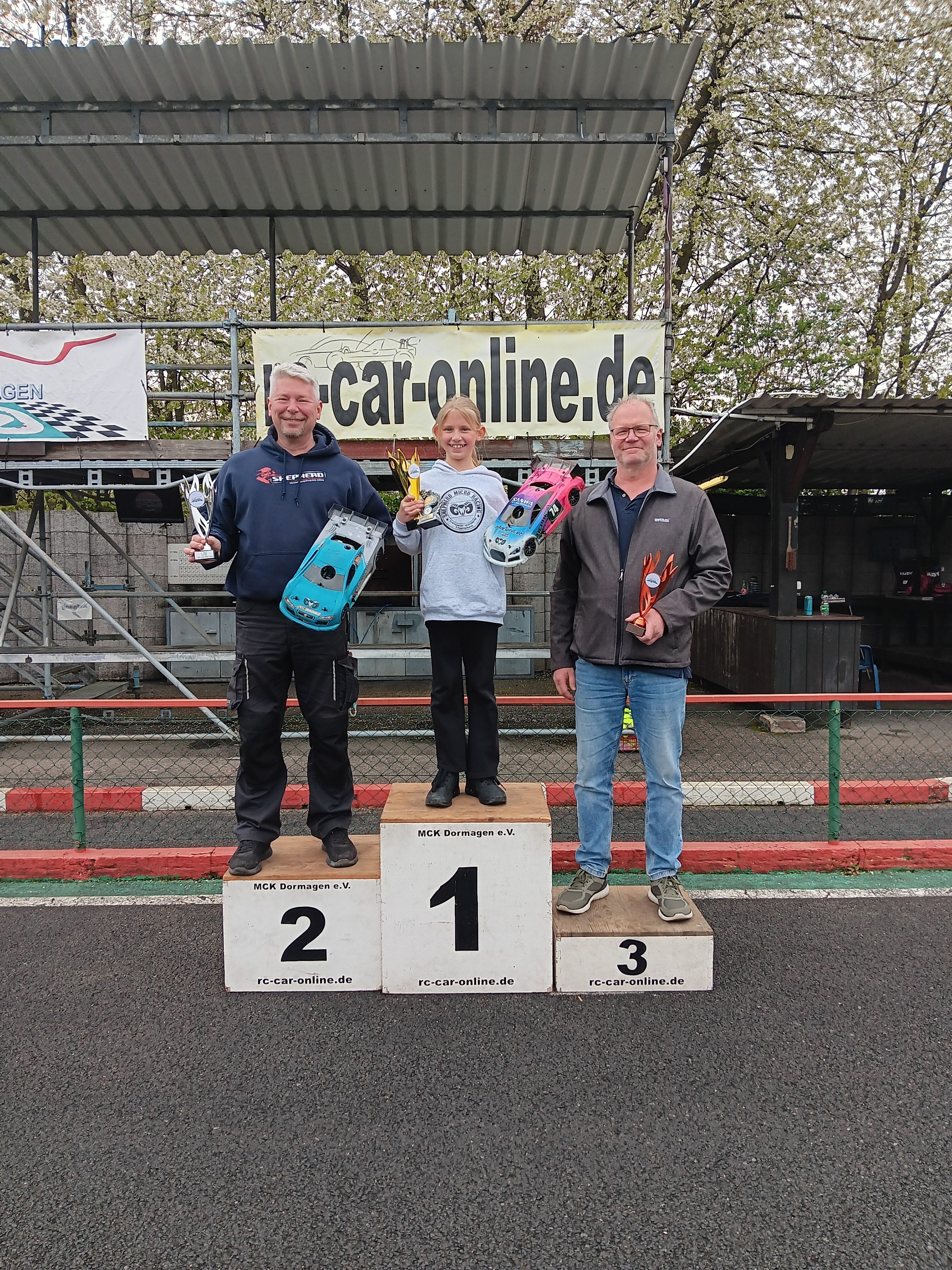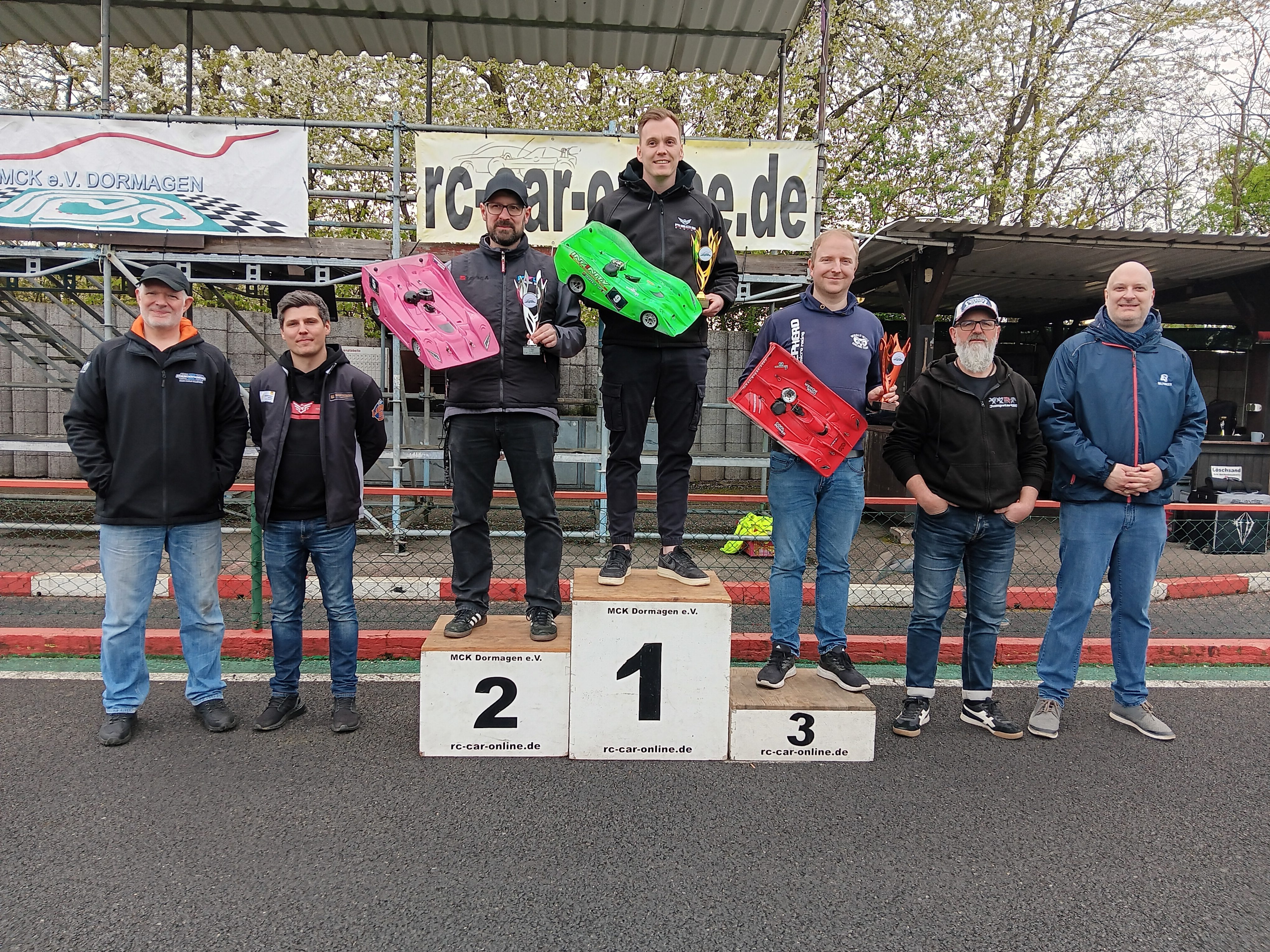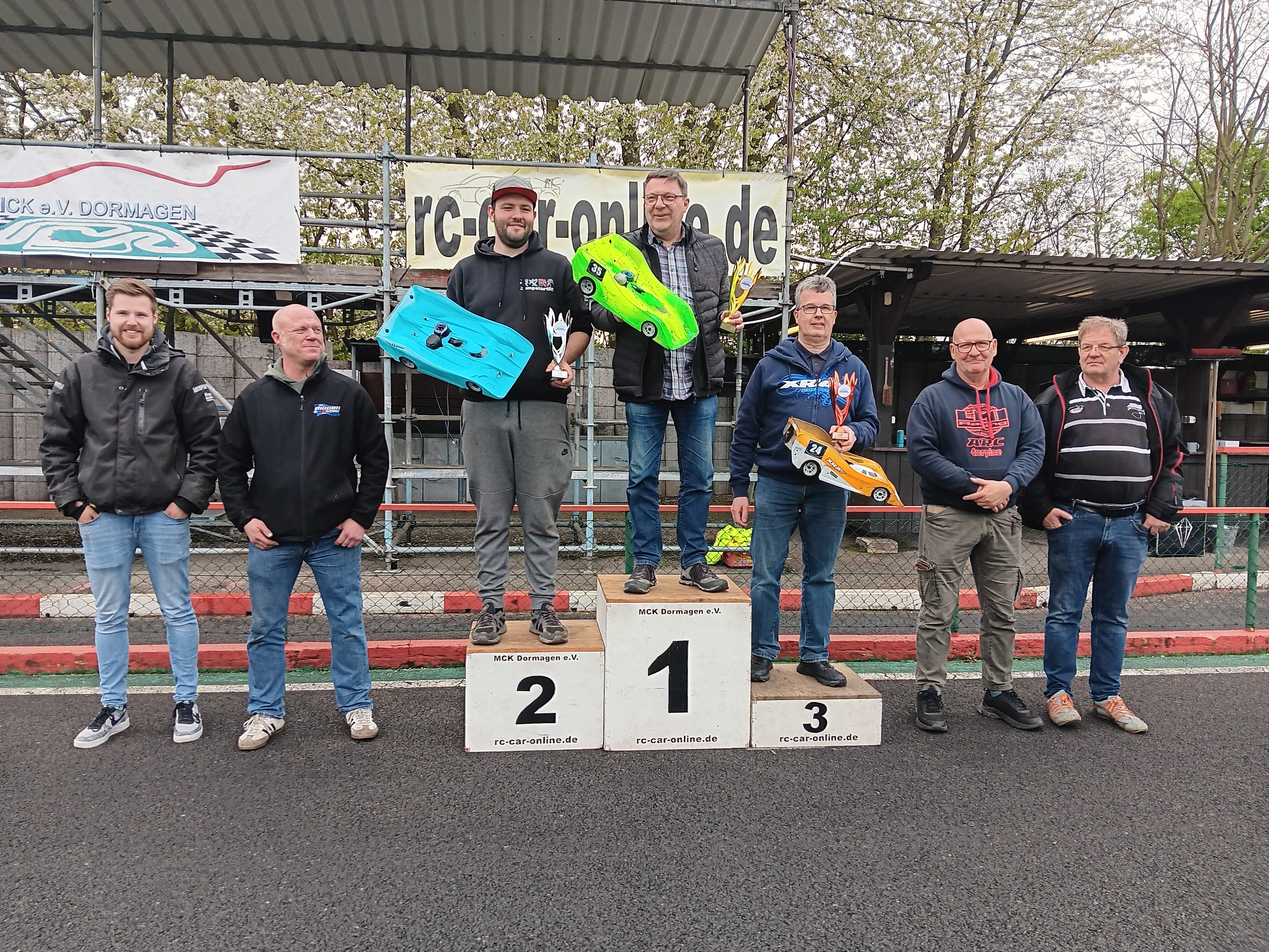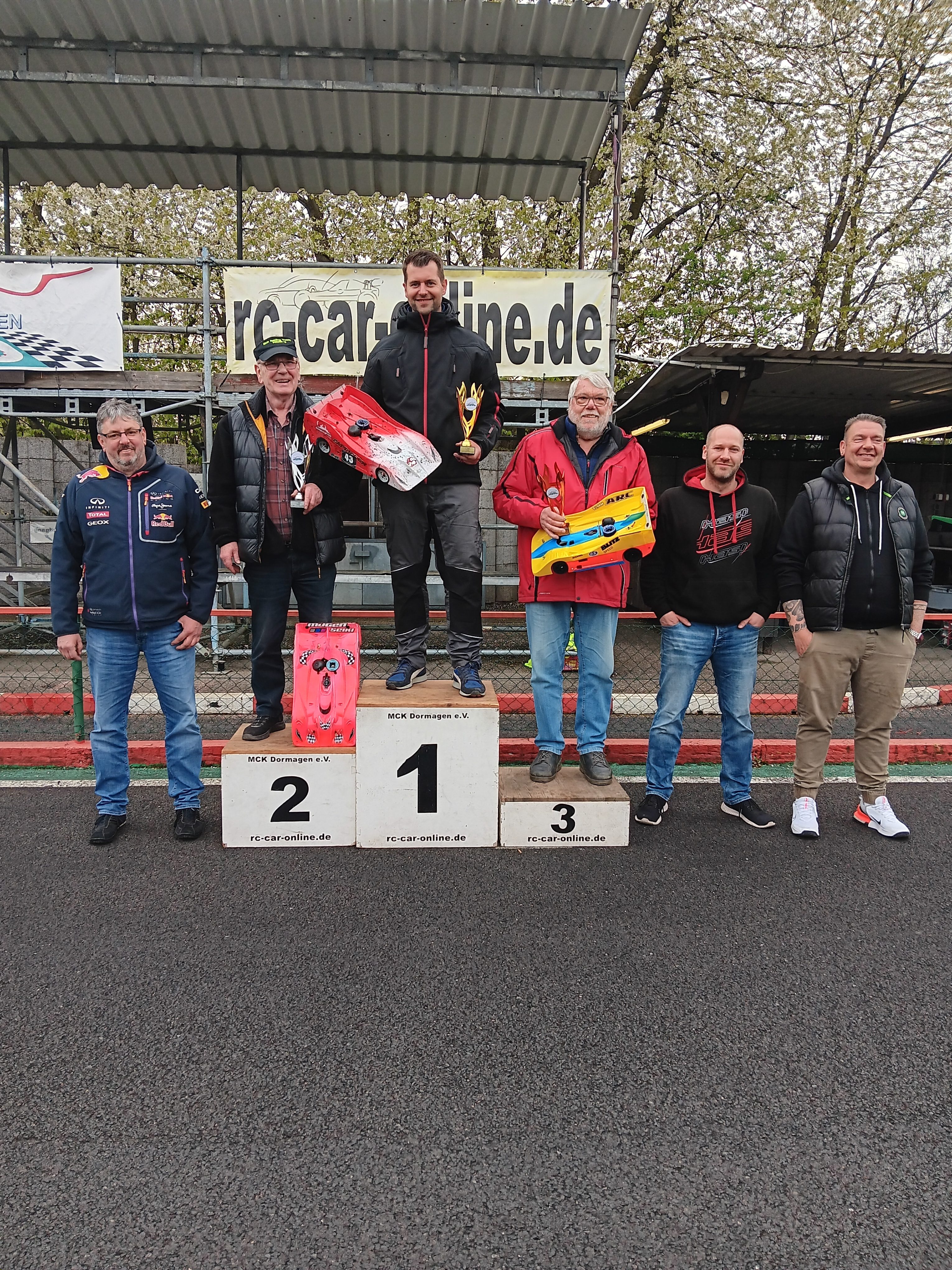 Pünktlich gegen 17:00 Uhr endete das intensive Renngeschehen, und die Teilnehmer versammelten sich nach der obligatorischen Protestfrist zur Siegerehrung. Dabei empfingen voller Freude und Stolz Amelie-Sophie Bernhardt (MC Dortmund/VG10S), Mike Degelmann (AMC Hamm/VG8S), Matthias Günther (RC Haltern/VG8K2), Tobias Hepp (RMC Düren/VG8K1), Melvin Diekmann (MRG Voerde/VG10), Michael Woeste (MRT Unna/VG8GT) und Ralf Putzlocher (AMC Hamm/EG8GT3) die Größten Pokale für den Klassensieg.